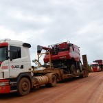 Caminhão com colheitadeira gigante de 17 toneladas atravessa região da Terra Indígena Marãiwatsédé, no Mato Grosso
