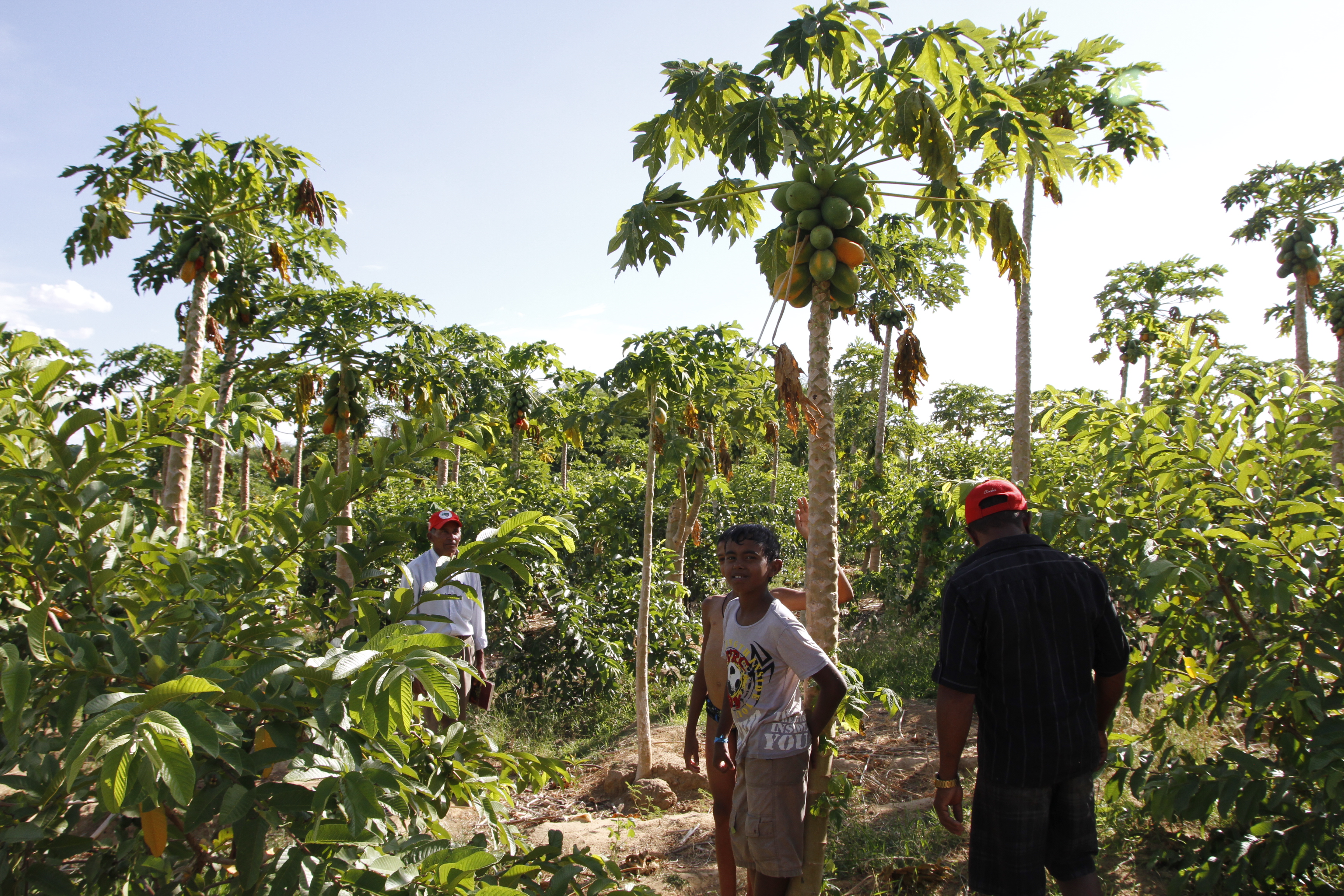 Caminhando pelas plantações de goiaba e mamão irrigados, sua principal fonte de renda, o baiano conta das desventuras e venturas que lhe aconteceram depois que fincou pé no Safra. Pegar o jeito do cultivo irrigado deu um pouco de trabalho e muitas despesas – foram R$ 6,5 mil de gastos só com canos, e no início a conta da energia chegava a R$ 240/mês (hoje é de R$ 70) -, mas a vida mudou muito. “Hoje tenho casa com água e luz, antes era barraco de taipa e candeeiro”, ri. Mas a maior felicidade, confidencia, é ter dois filhos formados como técnicos agrícolas e um, o mais velho, estudante de medicina em Cuba.