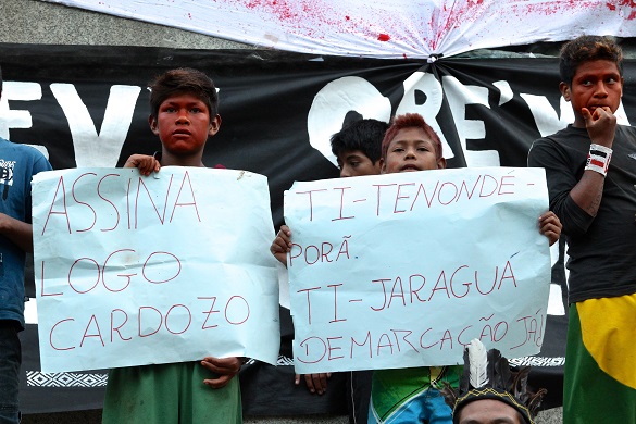 Sim, os guarani de São Paulo estão em campanha. Querem que o ministro da Justiça José Eduardo Cardozo assine as Portarias Declaratórias das Terras Indígenas Jaraguá e Tenondé Porã – esta última localizada em Parelheiros, no extremo sul do município – para que se dê início ao processo de desintrusão das áreas e indenização dos não índios. Os guarani exigem espaço suficiente para viverem bem, de acordo com seu modo de vida, e de maneira que possam preservar suas tradições e cultura. Com a área reservada a eles atualmente, isso não é possível, dizem. “Sem demarcação, sentimos como se estivéssemos presos numa gaiola”, ilustra o cacique Karaí Mirim, de 33 anos.