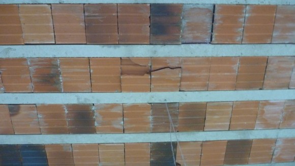 - Teto da oficina com tijolo rachado