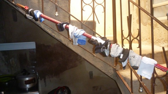 Além de oficina, o galpão também servia de alojamento a pelo menos seis dos cerca de 17 trabalhadores e seus familiares – incluindo cinco crianças e dois bebês. Uma escada íngreme e sinuosa levava ao andar de cima do galpão, onde uma mulher boliviana cozinhava o almoço dos costureiros e cinco homens assistiam à TV numa sala com cerca de 12 metros quadrados. Fios expostos, ausência de ventilação, sujeira, cheiro de esgoto, quartos apertados e mal iluminados, ausência de móveis básicos, como armário, além de botijão de gás dentro do alojamento entraram na lista das condições degradantes em que os imigrantes viviam. Apesar das centenas de quilos de tecido, papel e plástico no galpão, além da fiação exposta e do botijão de gás, não havia extintores no local. No mesmo dia, o galpão foi interditado pelos auditores.