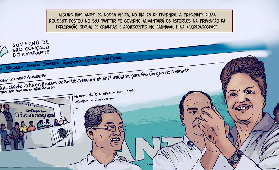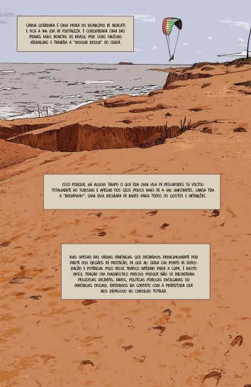 A agência Pública apostou em um formato diferente para falar da exploração sexual de crianças e adolescentes no Ceará, uma reportagem em quadrinhos. Clique aqui para ler a história em capítulos na internet, ou neste link para baixar a reportagem em PDF. O trabalho tem como preocupação apresentar o contexto de violações e vulnerabilidades em que serão realizados jogos da Copa do Mundo em Fortaleza apontar caminhos para o combate à exploração. O trabalho foi realizado por Andrea Dip e De Maio. Confira abaixo algumas das imagens e leia a reportagem na íntegra na página da Pública.