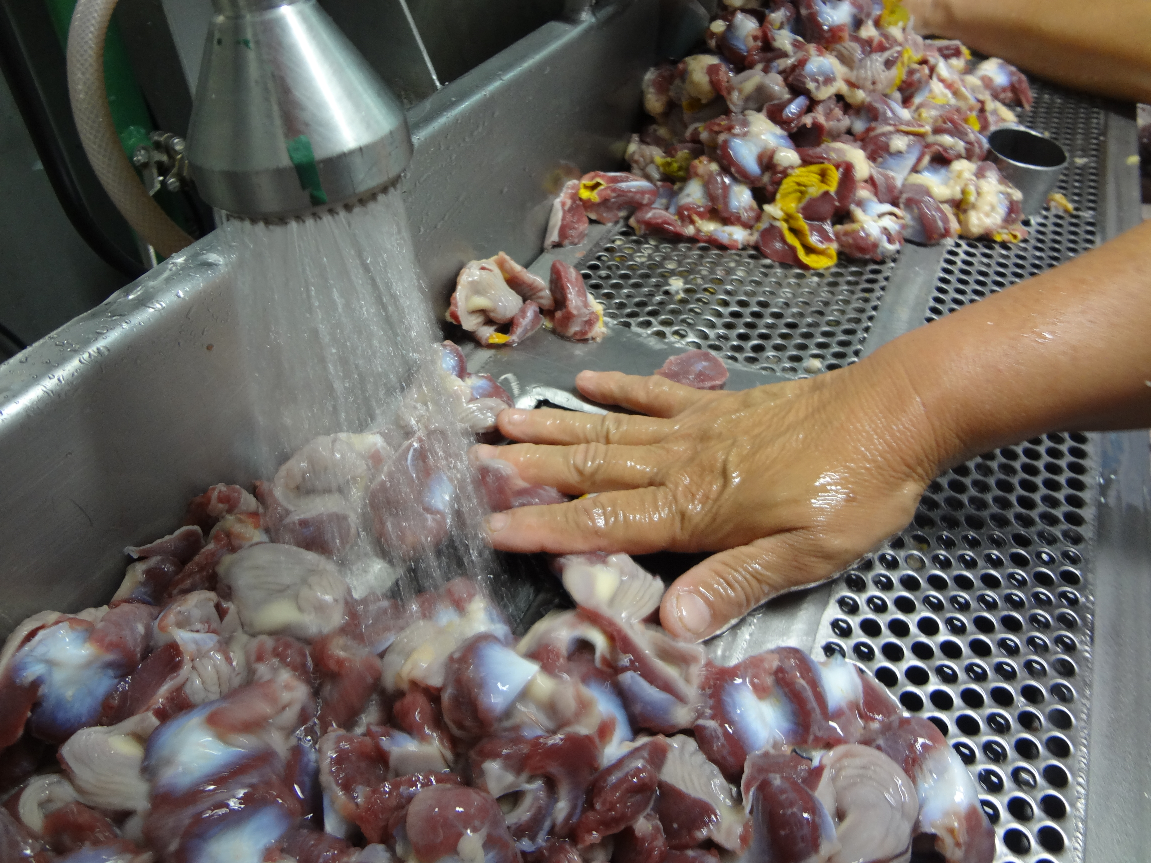 Apesar de um acidente já ter ocorrido nesta máquina de limpar moela, ela continuava em operação sem as proteções nessárias em unidade da JBS Friboi. Foto: Divulgação MTE