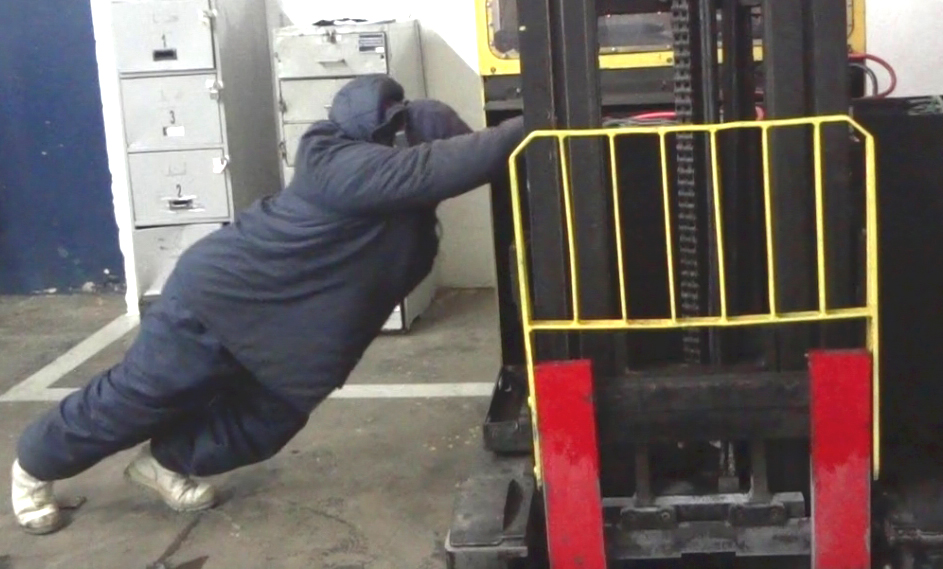 Funcionário empurra bateria que pesava mais de uma tonelada. Segundo fiscal, a força necessária é descomunal. ”É só uma questão de tempo para ele se afastar”. Foto: Divulgação MTE