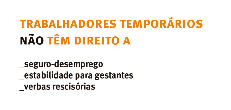Os temporários representam, portanto, menos custos para as empresas ao desobrigá-las de pagar encargos que são o principal motivo de calote aos empregados fixos brasileiros. “O maior número de ações ajuizadas na Justiça Trabalhista é decorrente do não pagamento das verbas rescisórias”, explica Magno Riga, auditor fiscal do Ministério do Trabalho.