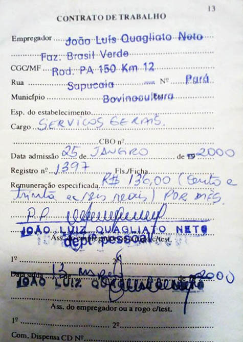 Meireles pediu ajuda à Repórter Brasil pelas redes sociais. Mandou fotos da carteira de trabalho, onde o nome do dono da fazenda, João Luiz Quagliato Neto, aparece. A família de Meireles, do Piauí, também ajudou a ligar os pontos das histórias. A partir dos registros, a reportagem confirmou que Meireles estava na lista de trabalhadores beneficiados pela decisão da Corte Interamericana.