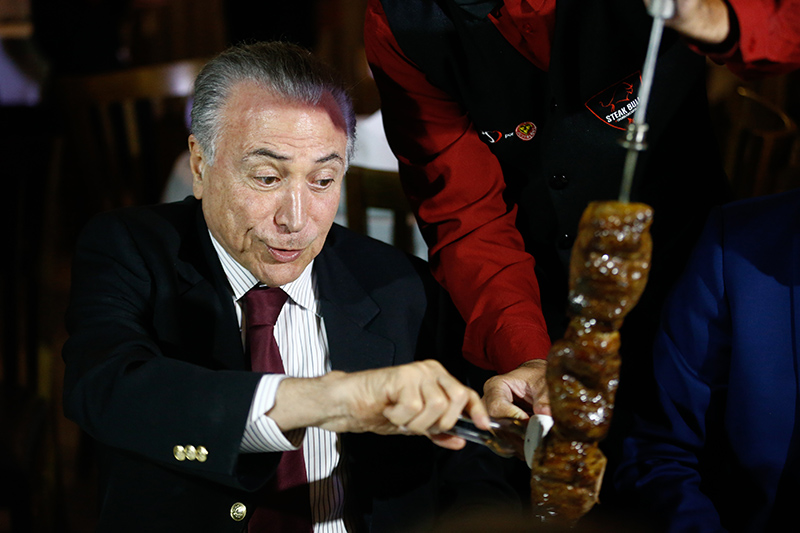 Para provar a confiança na carne brasileira, o presidente Michel Temer foi jantar em uma churrascaria com ministros e embaixadores (Foto: Pedro Ladeira / Folha de S. Paulo)