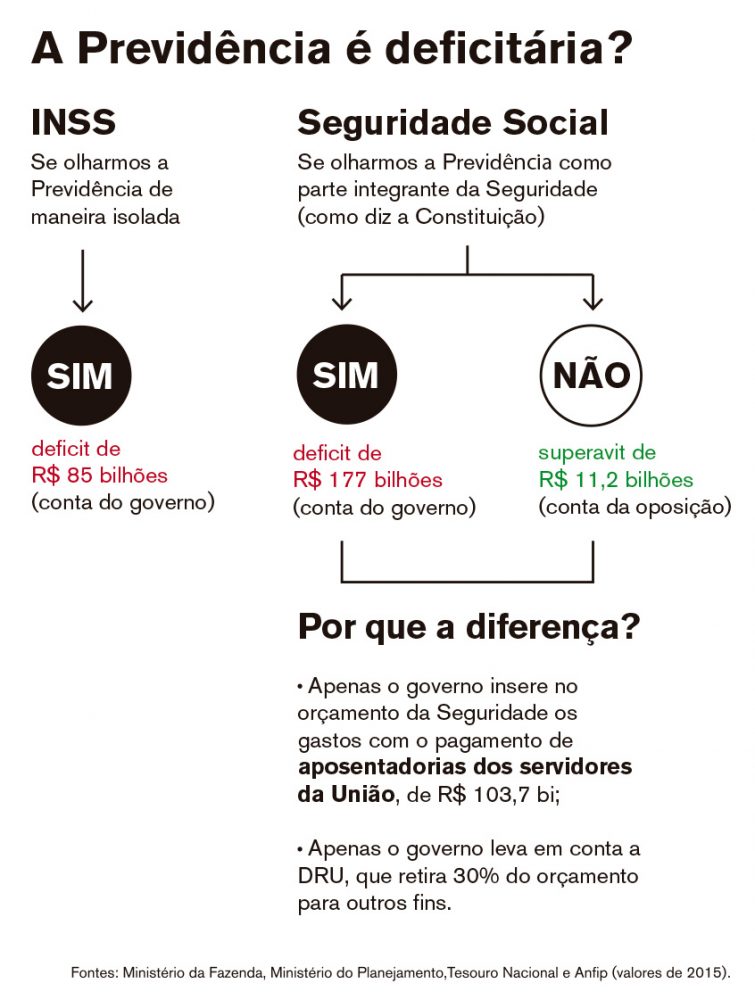 O governo federal afirma existir um deficit na Seguridade Social equivalente a R$ 257 bilhões em 2016 e R$ 177 bilhões em 2015, de acordo com relatório de Execução Orçamentária do Tesouro Nacional.