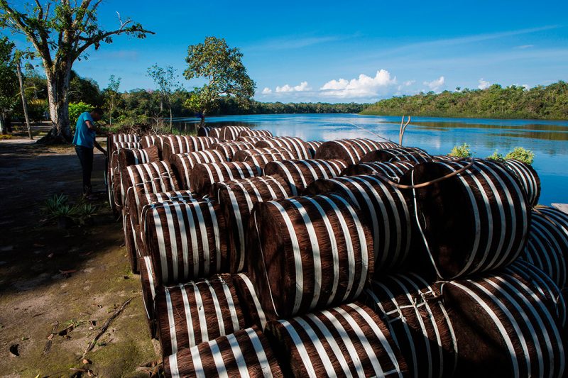 In the community of Malalahá where they live, the person giving the orders is the boss Edson Mara Mendonça, say the piassava workers in the region of the upper Negro River. But he is not the only one. Debt is encouraged by other bosses who travel to the communities in search of piassava workers. Jucileno Neves Pacheco, a 59-year-old from the state of Bahia, owes R$400 to another boss, but out of fear of reprisals he preferred not the reveal his name. “I’ve got product to pay for, but first I have to buy some oil and gasoline from him to collect the fibers”. In other words, in order to pay the debt, the worker must first take on a new loan. And then there’s the tape, remembers Pacheco. A 300 meter roll of tape used to tie up the leaves costs, on average, R$400. Tying the fiber into bales makes it easier for the boss to transport. “To begin with, we thought the tape was a good idea, because we thought it would be provided [by the boss]. But no. When they saw that they could make money, it started costing us more. And it doesn’t serve any purpose at all for us,” said Pacheco.