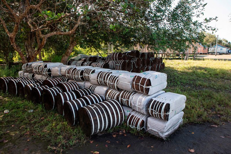 Tons of piassava. The piassava bales are transported by ferry. This picture shows a batch of piassava bales in the community of Tapera. Photo by Fernando Martinho