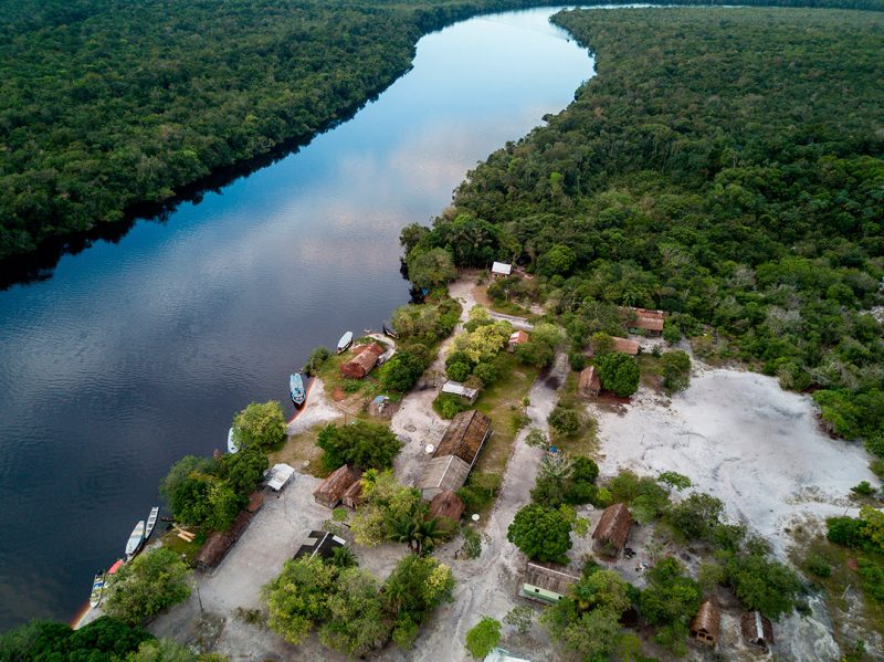 Bondage on the river. Aerial view of the community of Campinas. Six families still live off piassava extraction. Photo by Fernando Martinho
