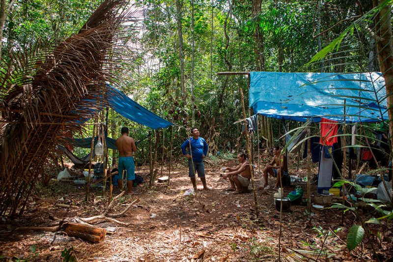 Working conditions. A piece of canvas tied to wooden posts makes their accommodation. There is no bathroom, sink, place to store food or safety equipment. The workers eat what they hunt. Photo by Fernando Martinho