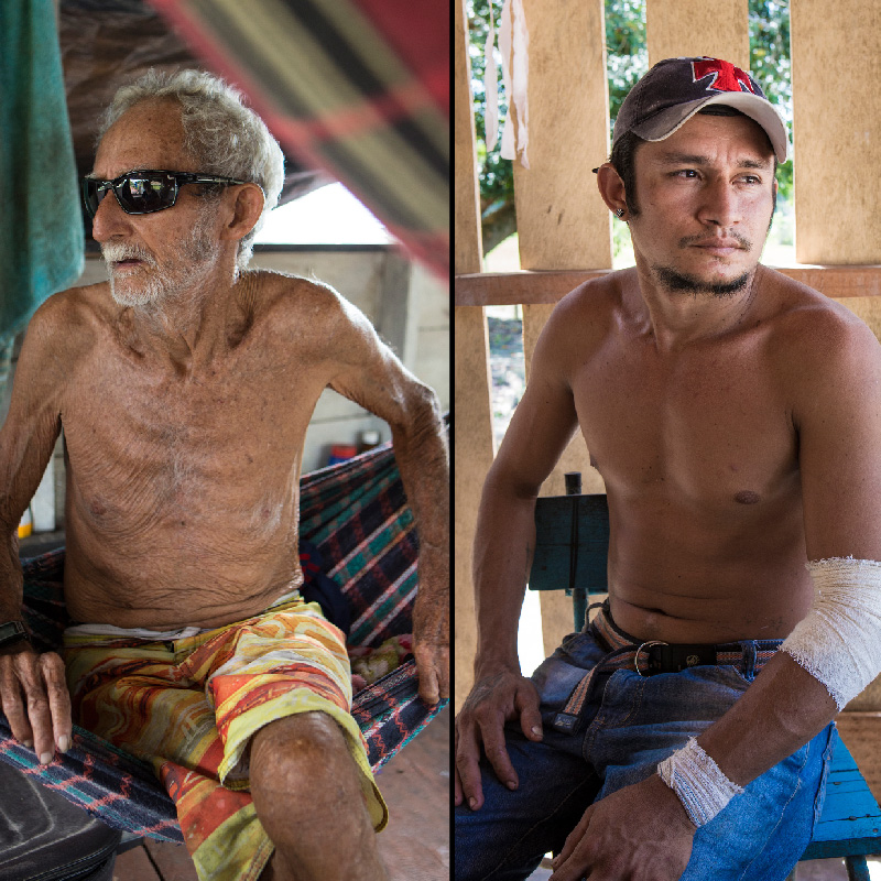 Two of his children got sick inside the plantations and were buried there. The first time, the boss did nothing to help, said Neres, without expressing any indignation. The second, a manager refused to offer any assistance because “the boss had not given the order”. The third time, Neres made it to the local community in time. When his son started to show signs of recovering, the boss found him to tell him that the infant would be fine. “I owed money and I took it as a warning. I went back upstream and after two weeks, my son’s condition deteriorated. The boss only arranged for a speedboat after the boy was more dead than alive.” He got the tattoo on his arm after the third death: “God is powerful, I have faith”.