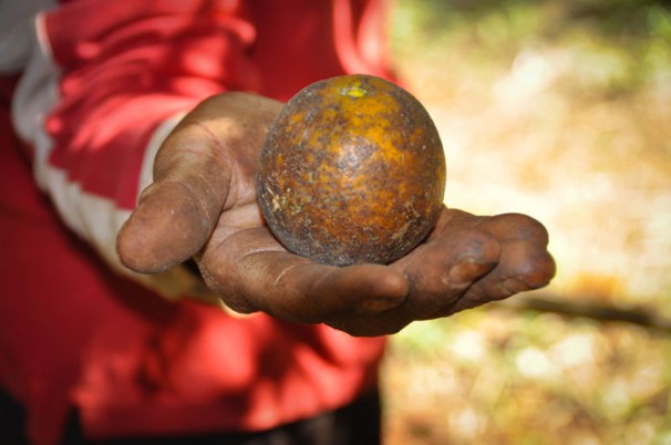 Funcionário exibe laranja em plantação da Cutrale (Ascom / PRT-15)