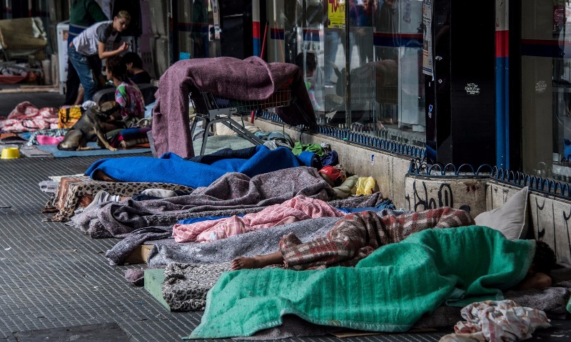 Sem-teto dormem na calçada no centro de São Paulo. Foto: Nelson Almeida/AFP/Getty Images