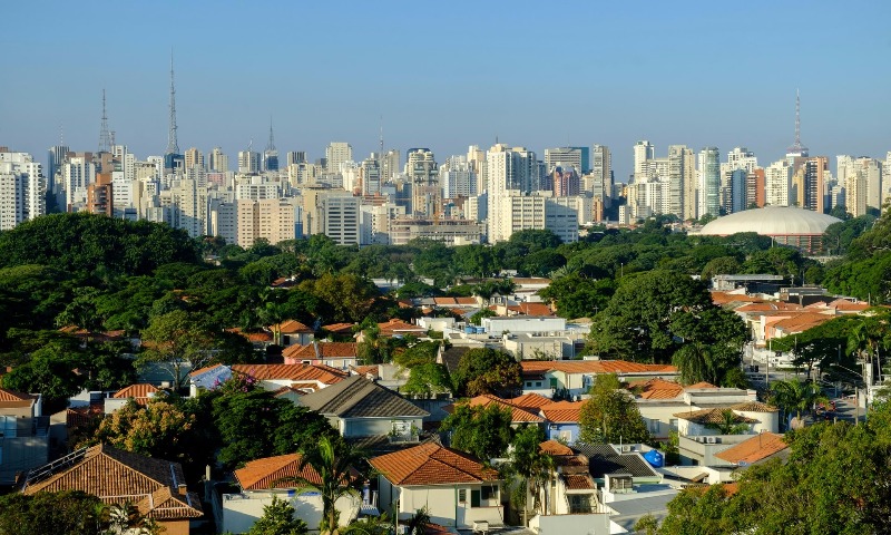 O bairro nobre Jardim Paulista com o centro de São Paulo ao fundo. Foto: Alamy