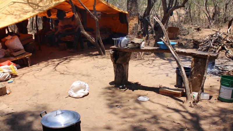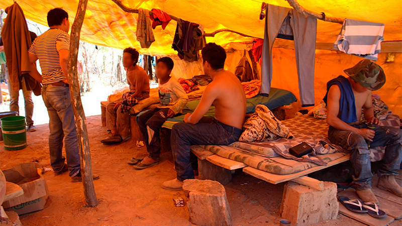 Dormindo em colchões jogados no chão e protegidos do sol apenas por lonas plásticas, o grupo sequer dispunha de água suficiente para matar a sede, apesar de a temperatura alcançar até 50 graus na região. Os trabalhadores ainda acumulavam dívidas para pagar a comida impostas pelo “contratista” – o agenciador de mão-de-obra. Na tentativa de economizar, deixavam até mesmo de jantar. A propriedade rural onde houve o flagrante, denominada Estância Ruroka, pertence a Rudi Kauenhowen Friesen, colono menonita associado à cooperativa Chortitzer