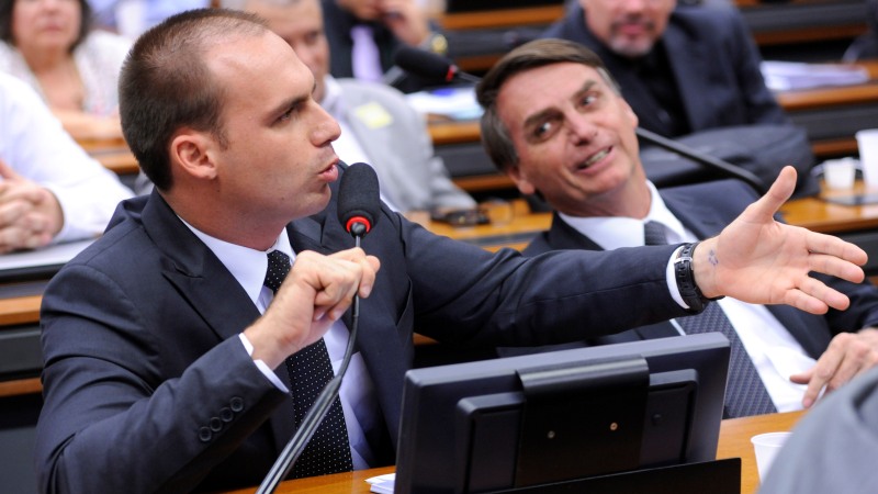Eduardo Bolsonaro (left) and his father Jair Bolsonaro (running for president and often dubbed “Brazil’s Trump”) voted for reducing the size of Jamanxim National Forest in the heart of the Amazon. Image by Lucio Bernardo/Chamber of Deputies