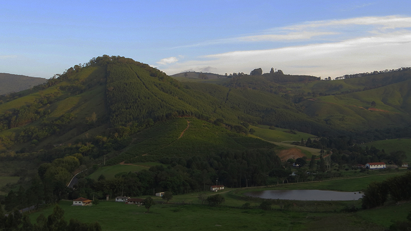 O café no Brasil é cultivado, principalmente, nas encostas íngremes da Serra da Mantiqueira, tomando boa parte do sul de Minas Gerais, além de abarcar áreas do interior paulista e do Espírito Santo – contando também, com uma pequena produção no Sul. Quase 2 milhões de hectares de terra são destinados à produção cafeeira no Brasil, uma área duas vezes maior que a Ilha de Porto Rico, ou três vezes maior que o Distrito Federal.