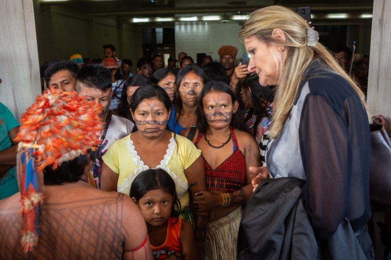 “Essas ONGs fazem a cabeça de vocês, mas não dão [faz sinal de contar dinheiro com os dedos] para vocês sobreviverem”, disse. Ela foi contestada por Maria Leusa Munduruku: “Eu tenho certeza que a senhora não é daqui. A senhora está vindo para explorar o nosso território!”