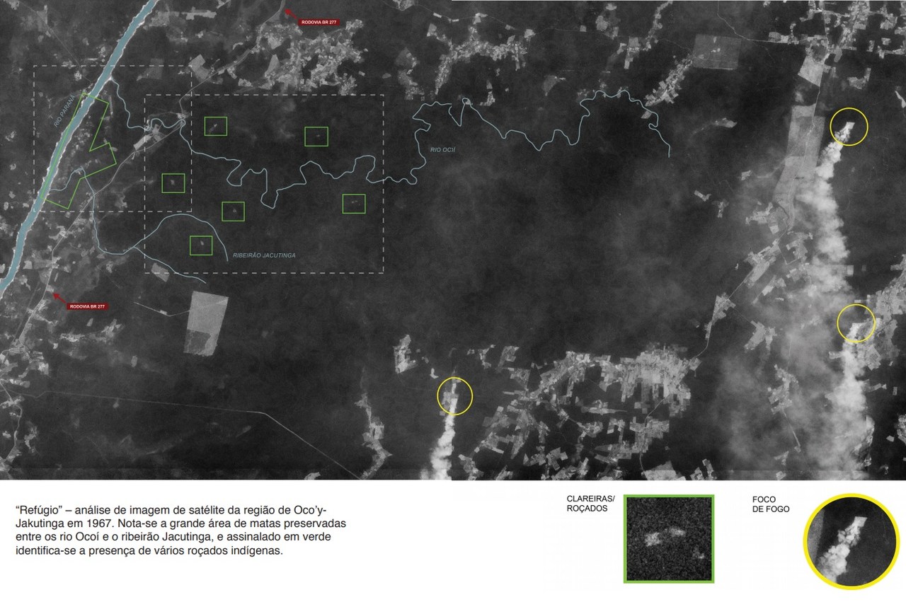 Imagens de satélite analisadas pelo pesquisador da Faculdade de Arquitetura e Urbanismo da UnB revelam também o avanço do desmatamento na região de Oco’y Jakutinga entre 1968 e 1978, a ocupação das terras por colonos e posseiros e o consequente ‘deslocamento forçado’ dos indígenas que ali viviam.