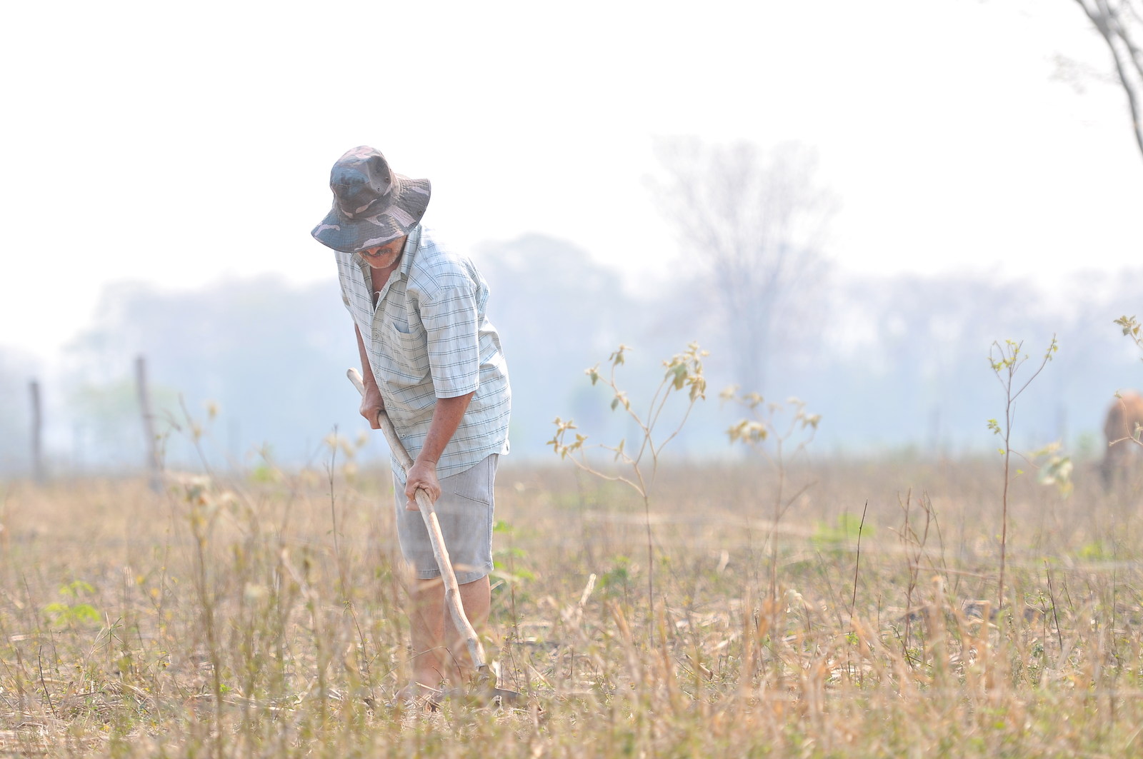 No assentamento Taquaral, em Corumbá (MS), Luiz da Conceição reclama que não vê mais o azul do céu: ‘Só cinza e fumaça’. (Foto: Álvaro Rezende/Repórter Brasil)