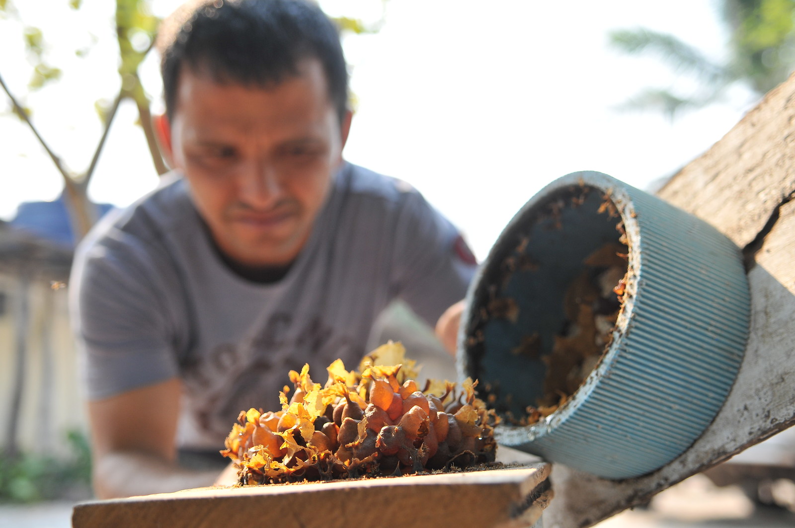 Valdinei da Conceição, criador de abelhas no assentamento Taquaral, afirma que a fuligem e a fumaça atrapalham a reprodução dos insetos (Foto: Álvaro Rezende/Repórter Brasil)