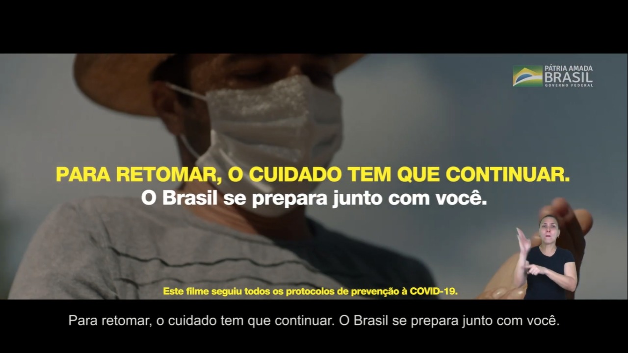 Propaganda trata da retomada econômica, mas não orienta sobre cuidados com a saúde (Foto: Reprodução)