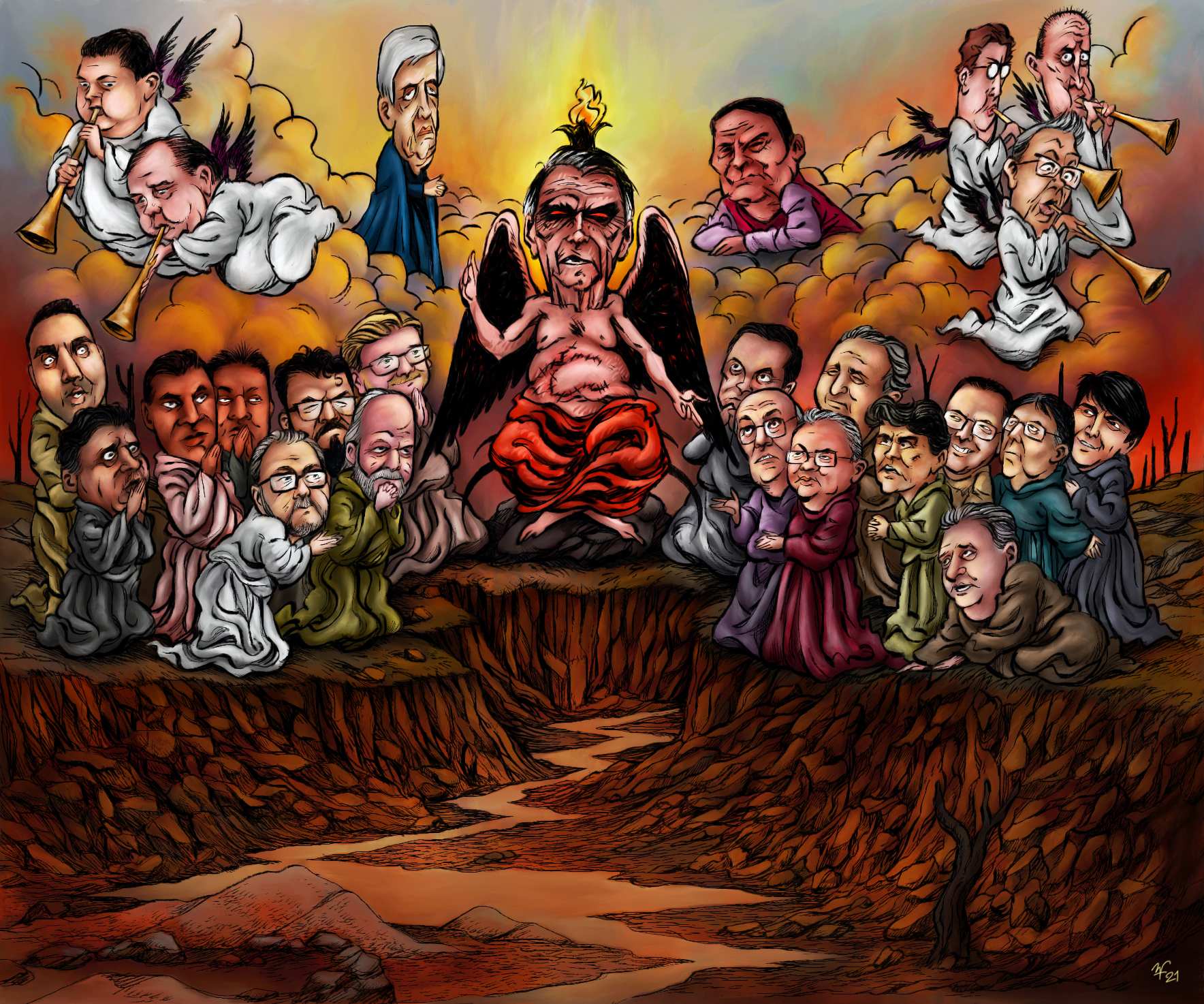 O impacto do garimpo nas terras indígenas se aproxima dos infernos pintados pelo holandês Hieronymus Bosch (1450-1516), que o ilustrador Rubem Filho usou para representar os lobistas
