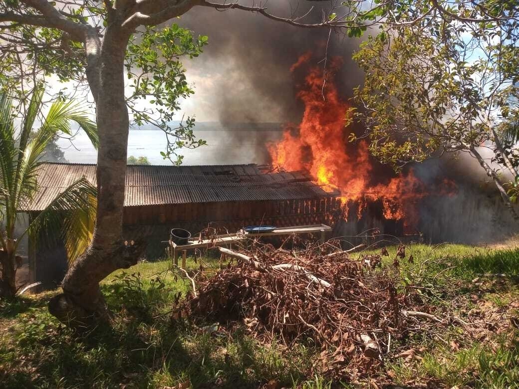 A casa da líder indígena Kabaiwun Munduruku foi queimada durante o levante de garimpeiros em Jacarecanga em retaliação à presença de tropas federais na cidade para combater os garimpos ilegais (Foto: Divulgação)