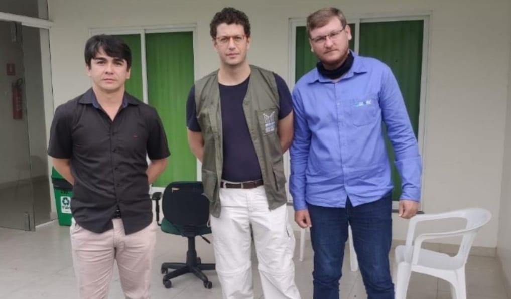 Antes de deixar o governo, o então ministro do Meio Ambiente, Ricardo Salles, esteve em Itaituba e se reuniu com dois lobistas, o vereador Wescley Tomaz (esq.) e o engenheiro ambiental Guilherme Aggens (dir.) (Foto: Reprodução/Facebook)