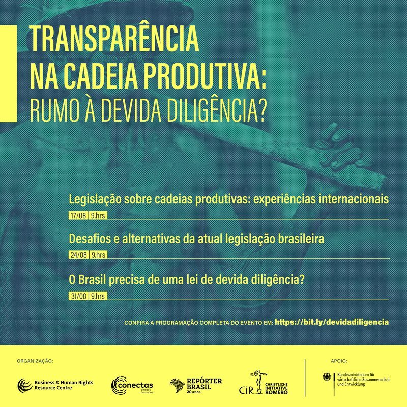 The seminar aims to engage society with the topic in Brazil. It is organized by the Business and Human Rights Resource Center (BHRRC), Conectas Human Rights, Christliche Initiative Romero (CIR), and Repórter Brasil, with support from Germany’s Federal Ministry for Economic Cooperation and Development (BMZ). It will analyse the current international scenario of international laws on due diligence and discuss how Brazilian society can benefit from them.