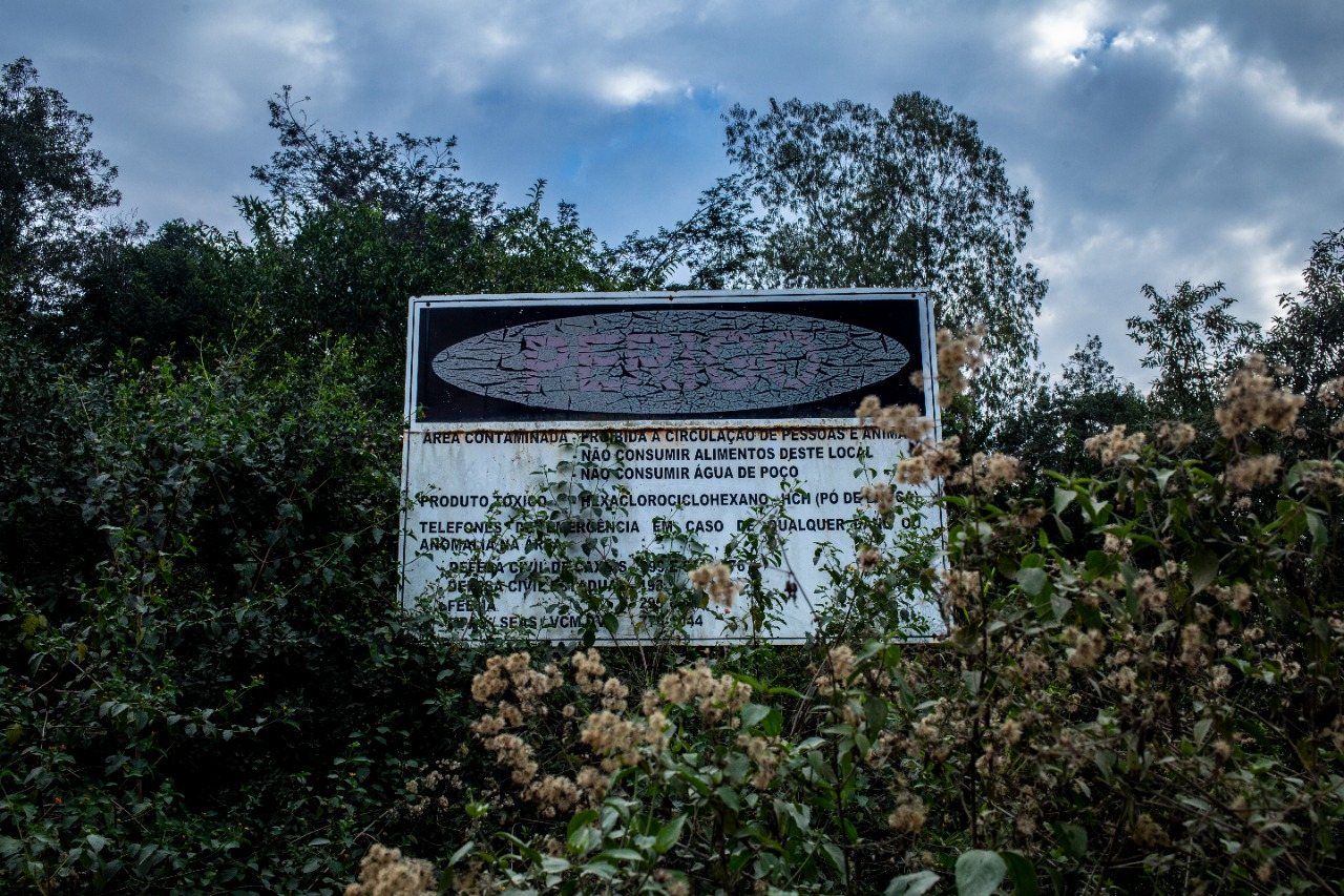 Os telefones de emergência que constam no aviso já não funcionam mais. A placa foi instalada há quase três décadas, e marca também a última vez que o Governo Federal tirou do papel algum projeto para controlar a contaminação por hexaclorociclohexano, o HCH. Um pozinho branco, de aparência inofensiva, trata-se de um agrotóxico organoclorado mais conhecido como “pó de broca”– o nome vem de um besouro que ataca o cafezal, a “broca do café”.