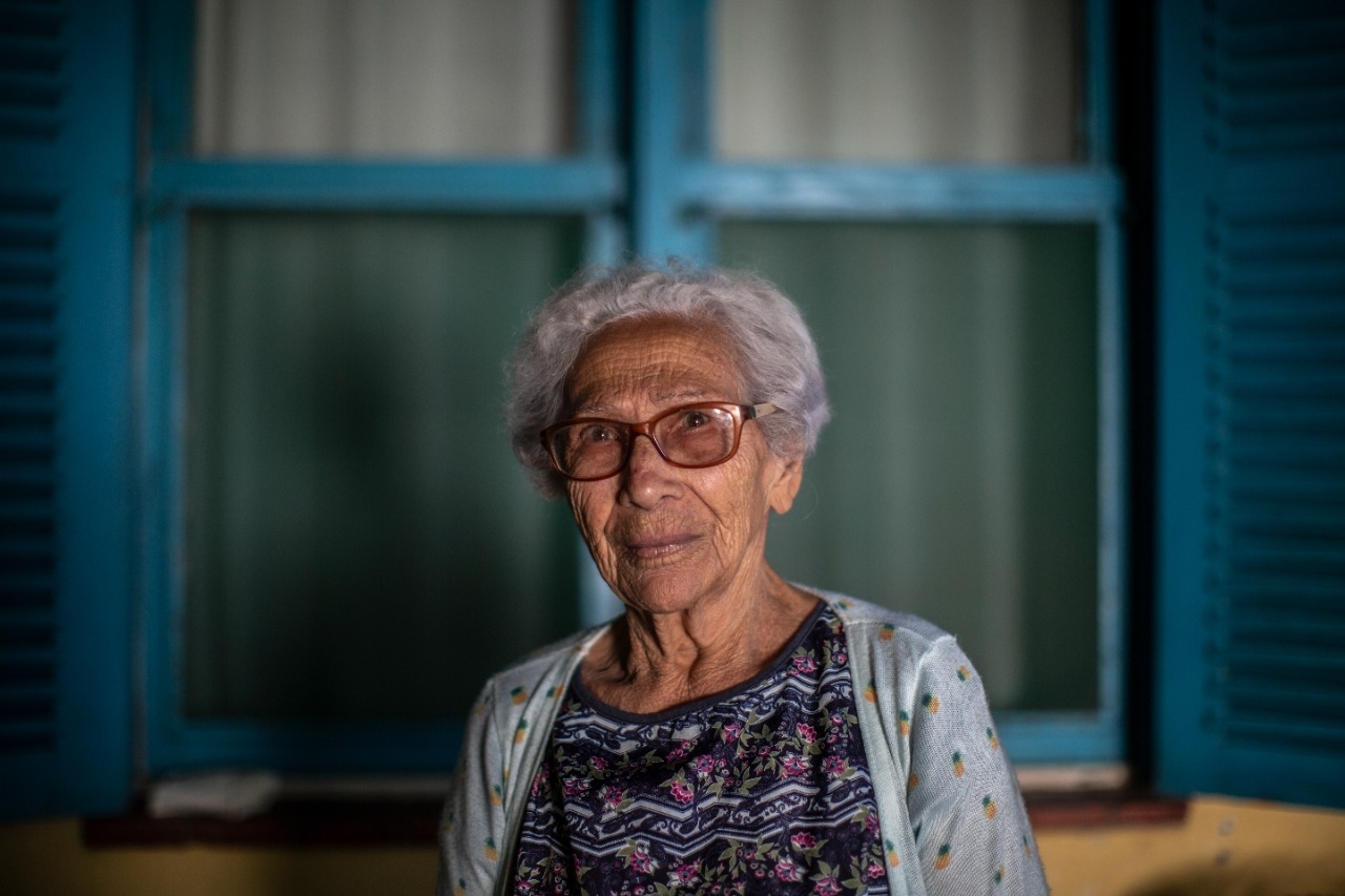Dona Maria mora em uma das casas construídas para a “Cidade das Meninas”. Sentada em uma cadeira em frente a uma grande janela azul, ela mostra a espaçosa sala de estar. “É uma casa muito boa, muito bem construída. Aguenta até furacão. Mas é enorme, foi feita para 20 meninas.” É tão grande que foi dividida em duas. Ela mora na da frente, e na parte de trás mora Tereza da Silva, de 85 anos. Ao ouvir o barulho dos visitantes, Terezinha logo aparece na varanda da vizinha.