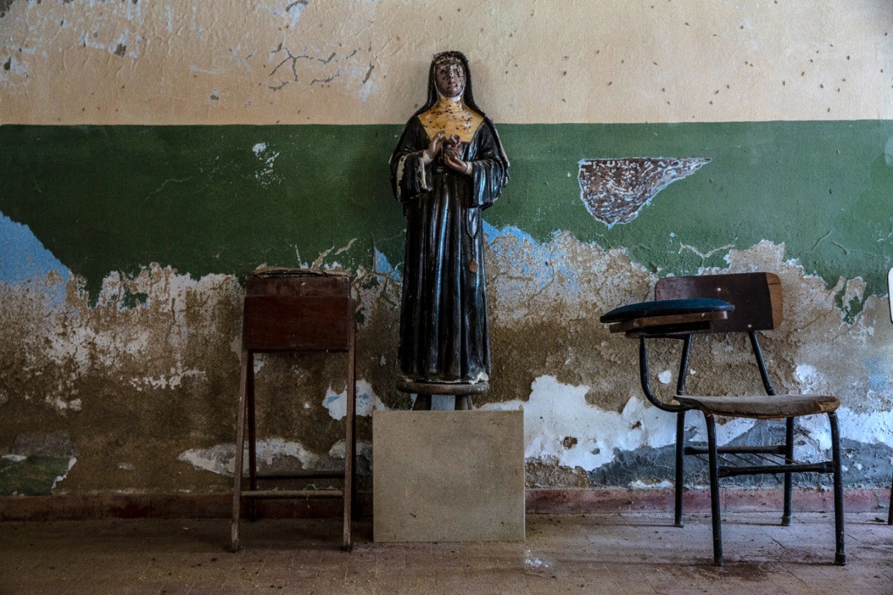 Avelino entra em um escritório improvisado da associação para buscar uma pasta com documentos. Lá, uma imagem de santa Margarida abençoa o que antes era uma sala de aula. Ao voltar, ele caminha bem devagar. “Eu tive um acidente vascular isquêmico”, diz, explicando por que manca.