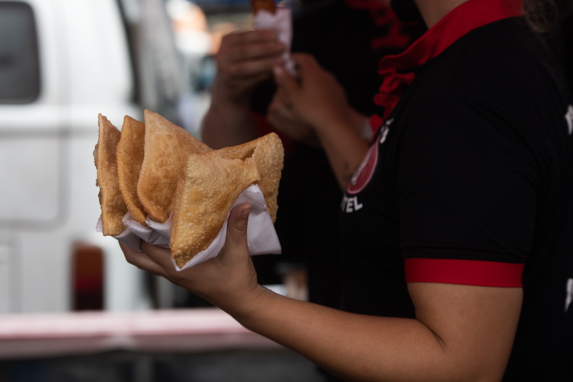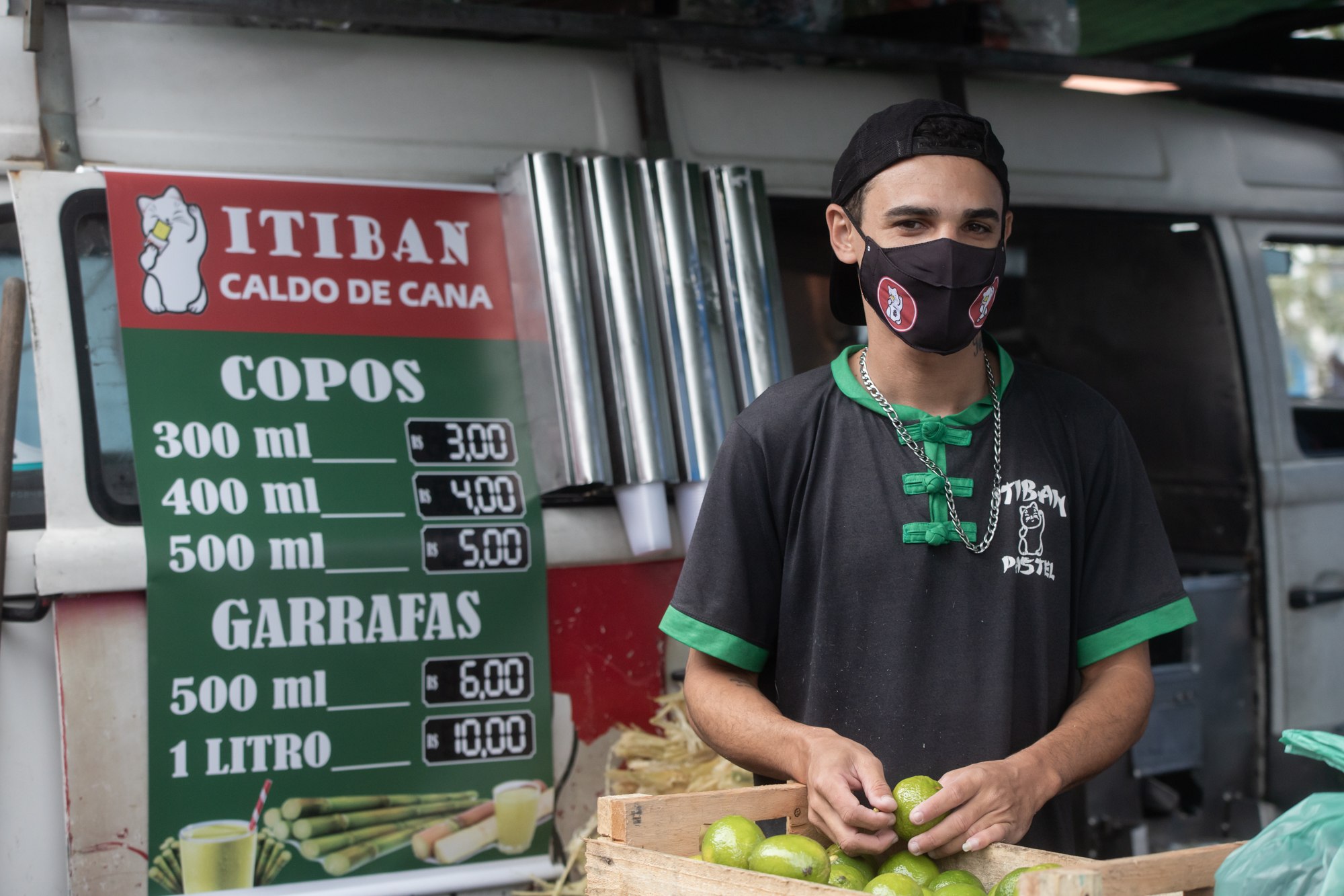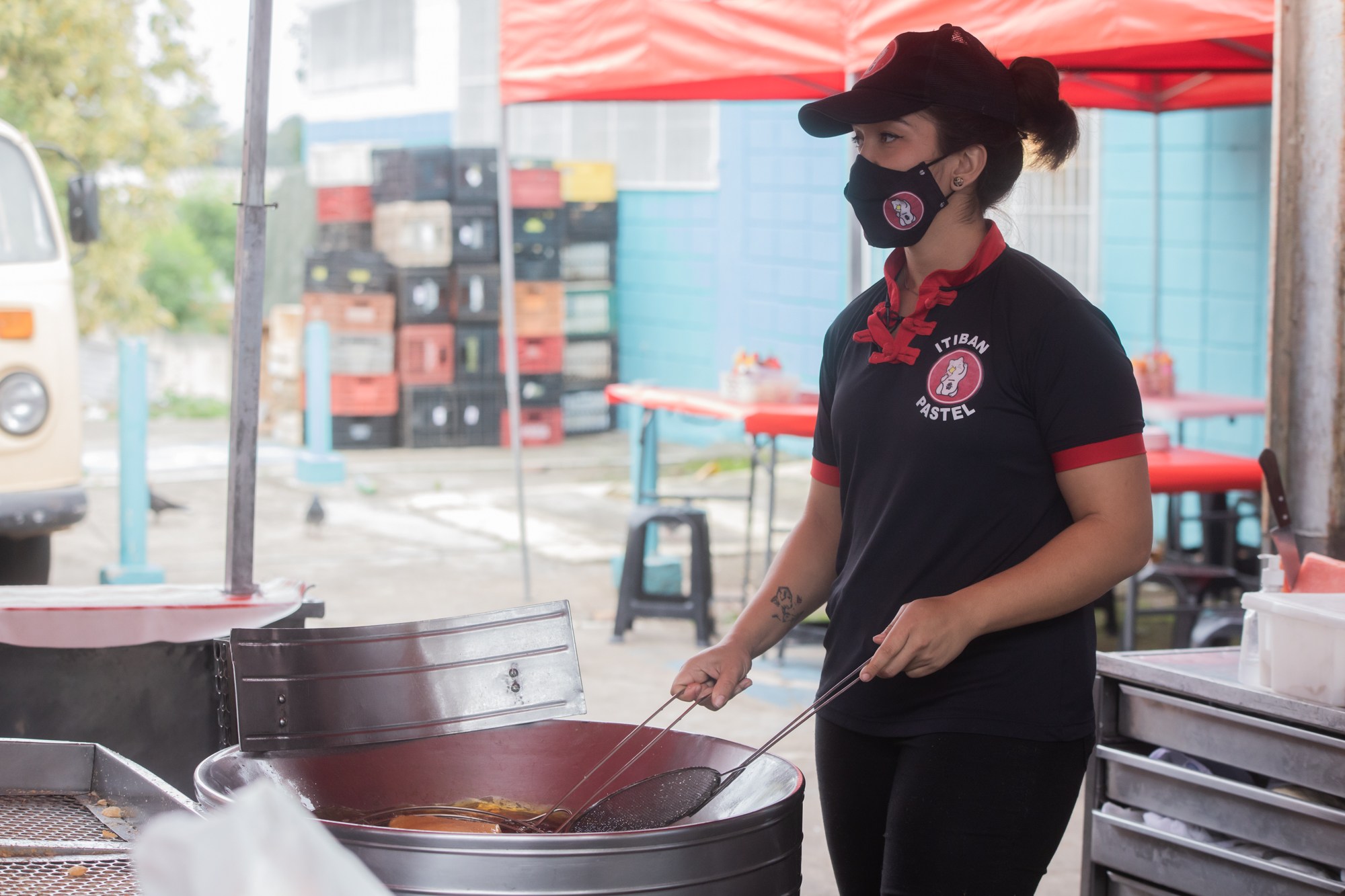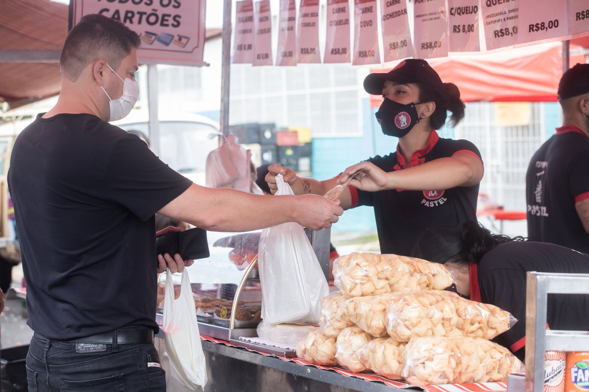 Feira de domingo é sinônimo de um bom pastel crocante, acompanhado de um caldo de cana bem geladinho. Para a pasteleira Sabrina Andrade, publicidade é a alma do negócio. Com muita simpatia, ela garante essa combinação deliciosa a clientes que frequentam a sua barraca há mais de 30 anos.