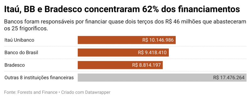 Os empréstimos concedidos aos frigoríficos com irregularidades foram intermediados por instituições financeiras parceiras do BNDES: Itaú Unibanco, Banco do Brasil e Bradesco. Segundo a resolução 1854/2009, nesta modalidade de financiamento — chamada indireta automática — são os intermediários que devem “exigir declarações” das empresas garantindo que possuem um sistema de monitoramento de seus fornecedores de gado e que eles seguem os padrões exigidos pelo banco de desenvolvimento. Mas, nas auditorias e investigações do MPF, ficou evidente que o controle é falho.
