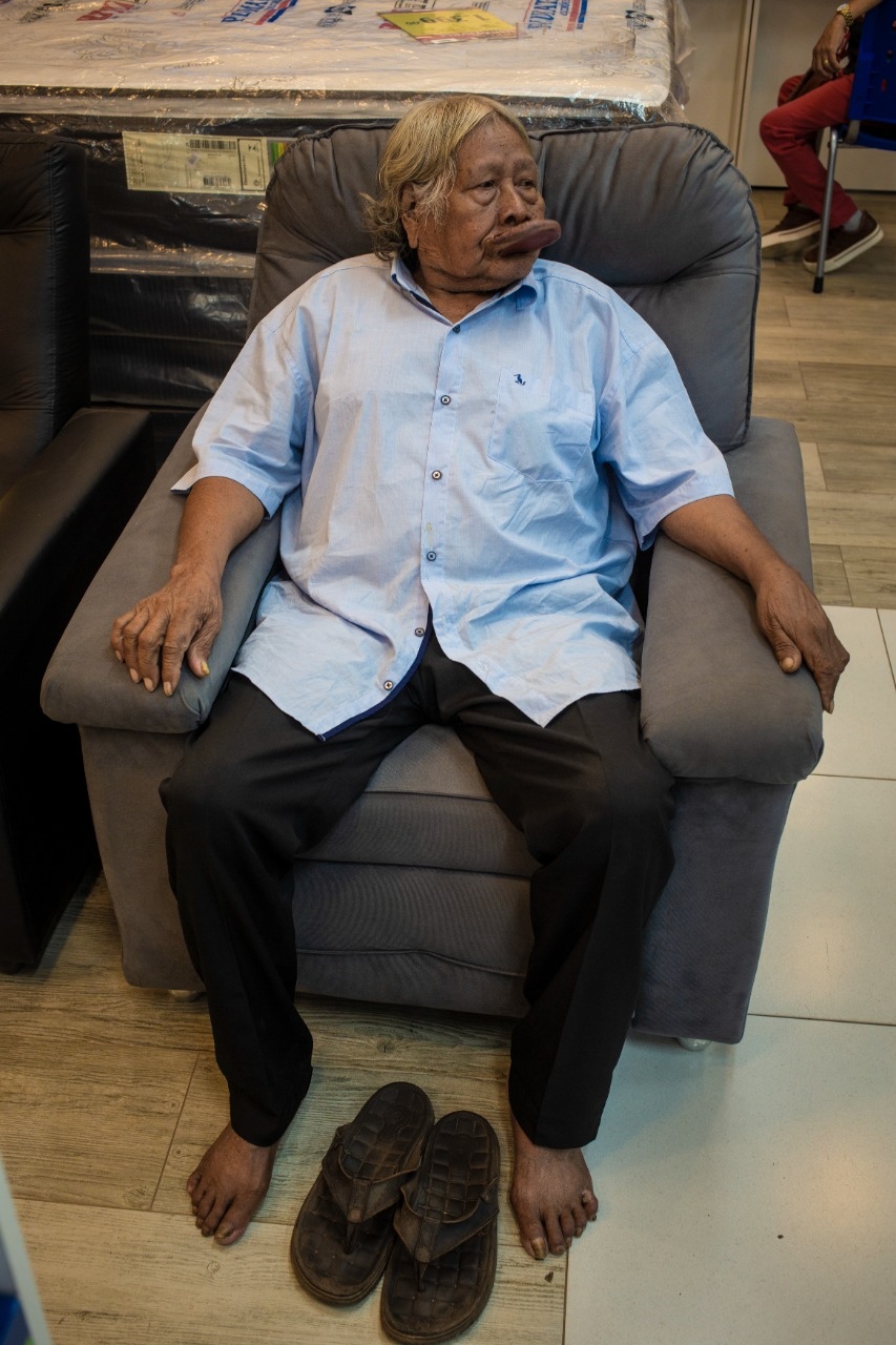 Enquanto seus netos testam o notebook, ele senta em uma confortável cadeira massageadora em exposição na loja. Aos 91 anos, Raoni Metuktire está cansado. Descalça os chinelos, cruza as pernas e descansa. Parece guardar energia para as várias batalhas que ainda enfrentará.