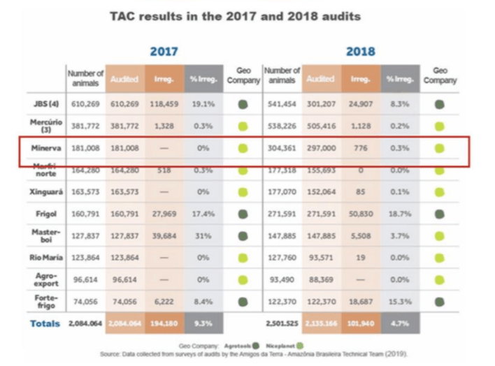 Nas auditorias do Ministério Público Federal – o principal e mais confiável procedimento de  verificação de terceira parte da cadeia – a Minerva Foods registra os melhores resultados entre  os principais players do setor.