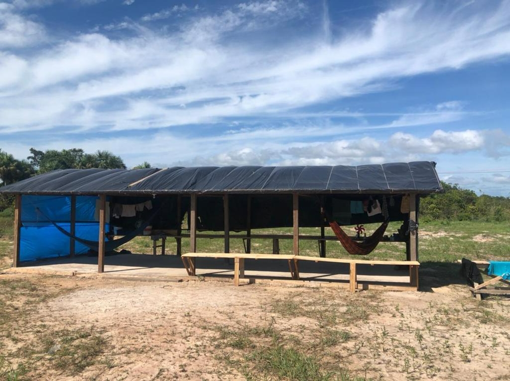 Os sete trabalhadores que estavam preparando o plantio de mudas de açaí e também construindo a sede da fazenda, além do galinheiro, dormiam em barracões de lona e em uma casa em construção – ainda sem portas, janelas e acabamento.