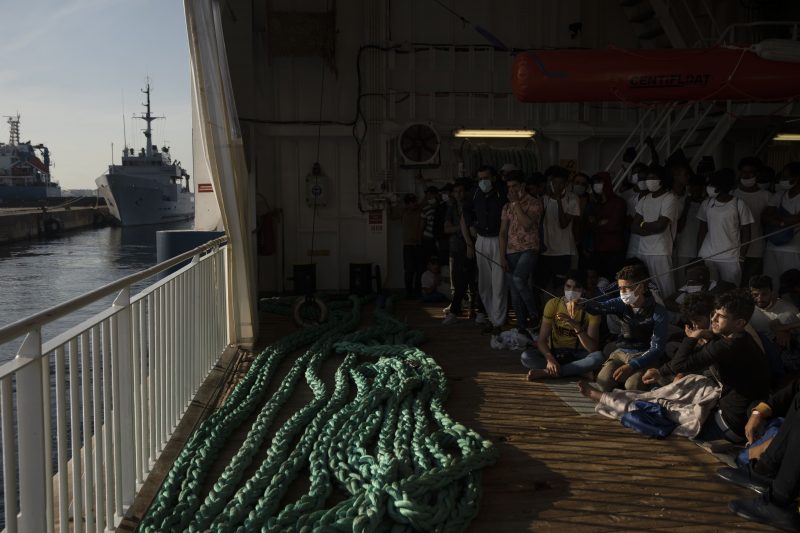 Migrantes resgatados na costa da Líbia a bordo do Geo Barents, um navio de resgate operado pelos Médicos Sem Fronteiras em 13 de junho de 2021. (Foto: Ed Ou/The Outlaw Ocean Project)