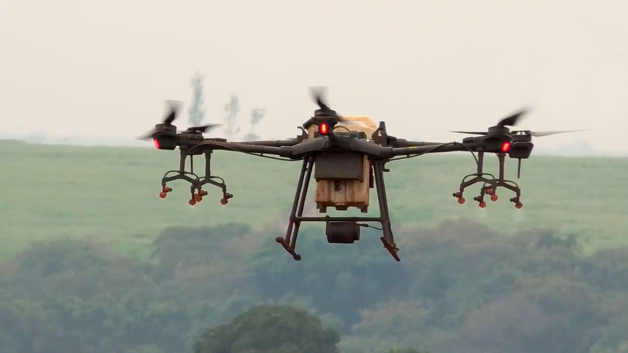 Uma máquina corta o céu da lavoura de cana de açúcar, a cerca de 3,5 metros do chão, gerando um zumbido alto e constante. O aparato, no caso, é um drone, que despeja agrotóxicos na plantação enquanto é controlado por um operador via aplicativo no celular. O equipamento é capaz de voar por cerca de dez minutos e pulverizar um hectare, o equivalente a um campo de futebol, antes de voltar para a base para trocar as baterias e ser abastecido com mais químicos. A cena, registrada em uma fazenda de Olímpia, interior de São Paulo, está disponível no YouTube, onde vídeos do mesmo tipo são cada vez mais comuns: drones têm sido utilizados na pulverização de agrotóxicos em plantações pelo Brasil.
