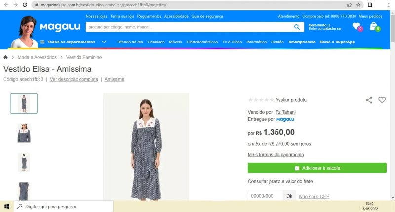 Entre os anúncios, um vestido da marca Amissima era vendido a R$ 1.350 enquanto o costureiro recebeu R$ 7, segundo relatório dos auditores fiscais do Ministério do Trabalho. A marca foi autuada por trabalho escravo em 2018. Todos os anúncios estavam ativos nos “shoppings virtuais” das duas gigantes do varejo até abril deste ano, quando a Repórter Brasil realizou o levantamento.