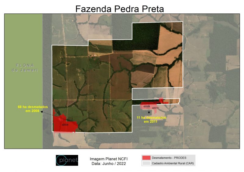 O Greenpeace analisou imagens de satélite e concluiu que a área também foi alvo de desmatamento de 79 hectares entre 2008 (após agosto, portanto, não anistiados pelo Código Florestal) e 2011 – ambos em desacordo com o que estabelece o protocolo de monitoramento.