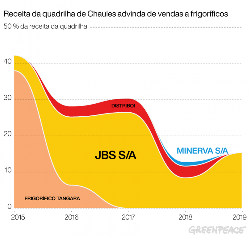 Apesar de todas as transações ilegais de madeira na Amazônia, eram as vendas de gado para a JBS, Minerva e outros frigoríficos que formavam uma das principais fontes de receita da quadrilha comandada por Pozzebon. Segundo documentos que integram a investigação da Polícia Federal aos quais a reportagem teve acesso, o grupo do desmatador recebeu da JBS R$ 47 milhões, apenas entre 2015 e 2019 – em três anos neste período, o frigorífico foi a principal fonte de receitas do bando.
