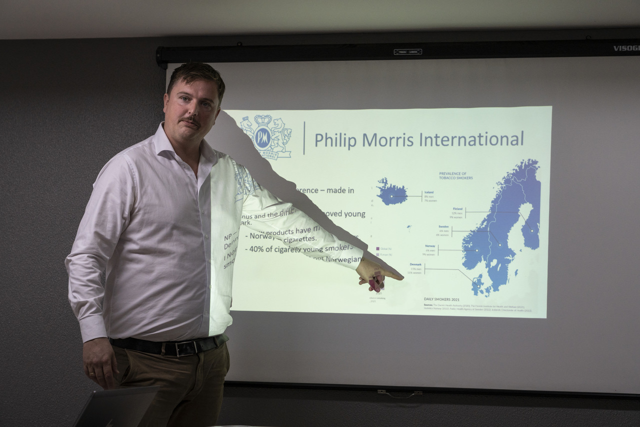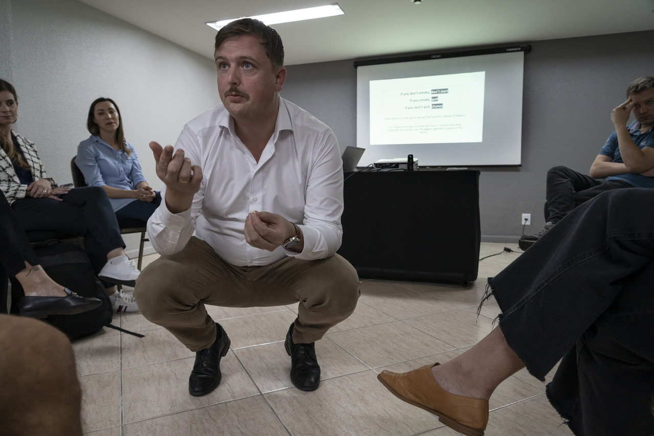 Um dos funcionários da multinacional encarregado de apresentar o reposicionamento da marca era Alexander Nepper, que voou da Dinamarca para aquela sala de conferência no principal hotel de Santa Cruz. Gerente de assuntos regulatórios da Philip Morris no país nórdico, Nepper participou do encontro fumando um IQOS da empresa: um dispositivo que aquece eletronicamente o tabaco, liberando nicotina em suas baforadas.