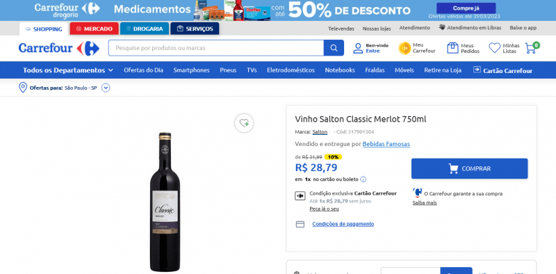 Loja virtual do Carrefour, que tem compromissos firmados contra o trabalho escravo, oferece desconto a vinho fabricado por empresa envolvida na exploração de trabalhadores (Foto: Reprodução)