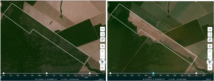 Mesmo descontados os investimentos em fertilizantes, agrotóxicos e maquinário, o negócio parece estar valendo a pena, porque a família vem aumentando a área plantada dentro desta parcela de 235 hectares. Na safra 2018/2019, apenas parte da área foi cultivada, segundo dados do SojaMaps – um programa de monitoramento via satélite mantido pela Universidade Estadual do Mato Grosso. Mas a lavoura foi crescendo até cobrir, segundo o programa, toda a extensão da parcela na safra colhida no ano passado. Analistas consultados pela Repórter Brasil confirmaram que na safra atual, 2022/23, a área foi inteiramente coberta pela soja outra vez.