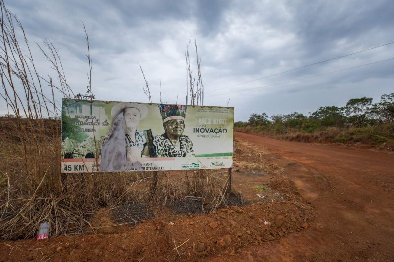 Na entrada da TI Utiariti, outdoors celebram parceria entre indígenas e fazendeiros e…