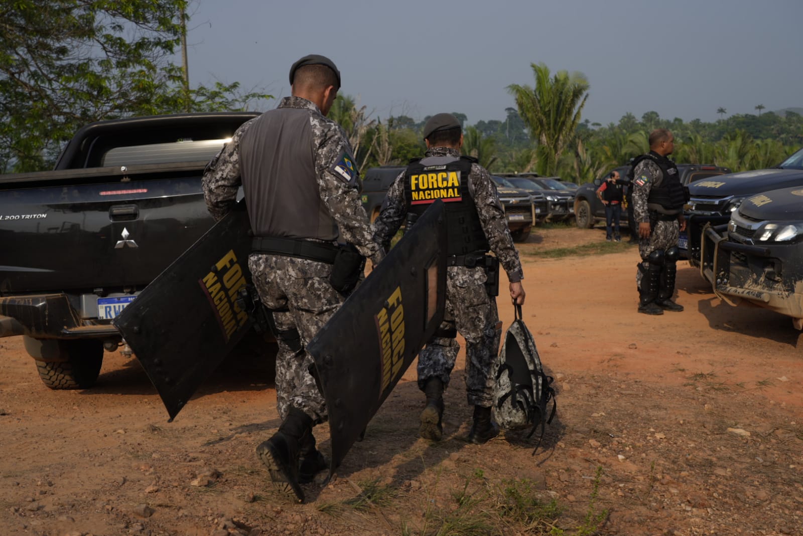 A operação teve início na manhã desta segunda (2), com a chegada de um helicóptero do Ibama às 8h. A aeronave sobrevoou a comunidade por 20 minutos, enquanto as forças policiais intensificaram o cerco nas estradas de acesso e iniciaram a escolta dos oficiais de Justiça que estão entregando as ordens de despejo.
